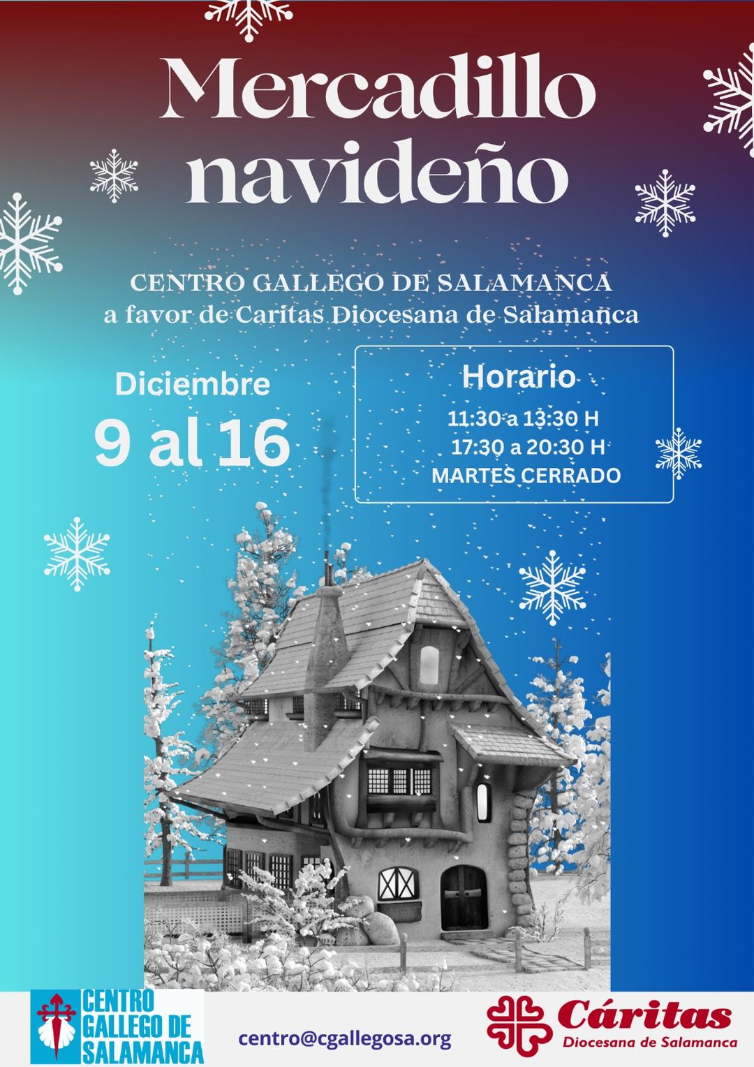 A partir de este sábado 9 de diciembre, y hasta el siguiente sábado 16, os invitamos a pasaros por el mercadillo navideño organizado por el Centro Gallego de Salamanca en su sede de C/ Arriba, 6.